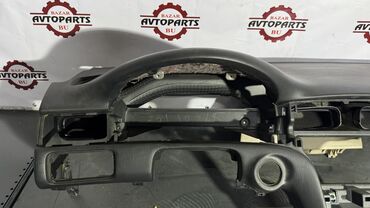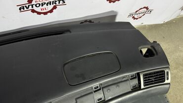 Панель приборов черного цвета. Предназначена для установки в автомобиль. Центральная часть панели имеет отверстия для установки воздуховодов и элементов управления. Также предусмотрено место для установки рулевого колеса. Подходит для замены поврежденной или изношенной панели, а также для восстановления интерьера салона автомобиля.
