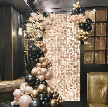 Панель из мерцающих квадратов золотистого цвета. Подходит для оформления фотозон на праздниках, таких как дни рождения, свадьбы и другие торжества. Легко монтируется и создает яркий, эффектный фон для фотографий и видео.