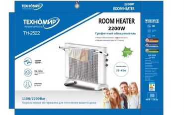 - ТЕХНОМИР TH‑2522 — графитовый обогреватель 2200 Вт, площадь обогрева 30–45 м², быстрый нагрев за 5 секунд, пониженный уровень шума, без запаха. Режимы мощности: 1100/2200 Вт. Оснащен перекладиной для сушки белья.