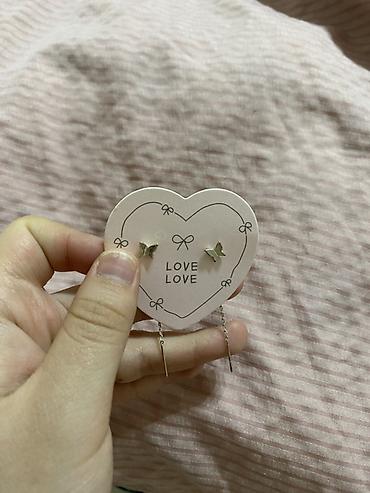 - Пара 2: пусеты-бабочки с тонкими съёмными цепочками и узкими подвесами-стержнями. Можно носить с цепочками или без — два стиля в одном комплекте.