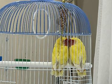 Неразлучники (пара) с клеткой и аксессуарами - Вид: декоративные