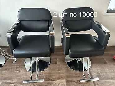 - Кресла парикмахерские круглое основание, гидравлика, подножка, обивка черная, металлические подлокотники. Количество: 2 шт. Цена на фото: по 10000.