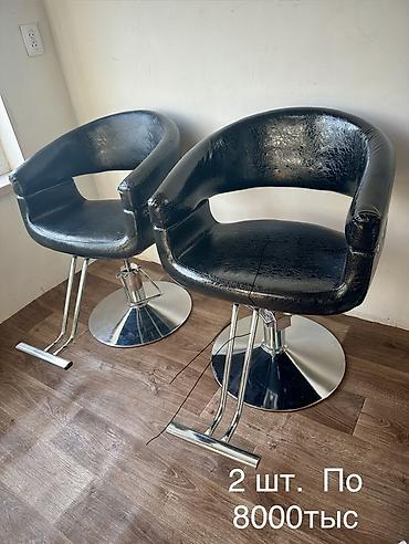 - Кресла парикмахерские с круглым основанием, гидроподъёмник, обивка черная, полукруглая спинка, подножка-трапеция. Количество: 2 шт. Цена на фото: по 8000 тыс.