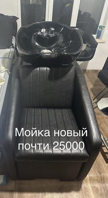 - Мойка парикмахерская: кресло с подлокотниками, глубокая черная чаша с смесителем и подголовником. Подпись на фото: «Мойка новый почти 25000».
