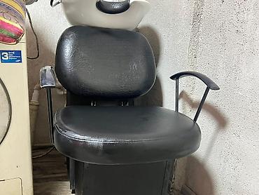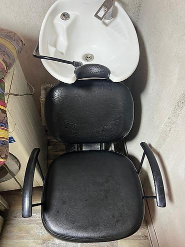 - Мойка парикмахерская: керамическая раковина с горловой опорой, смесителем и гибким шлангом, кресло с подлокотниками.