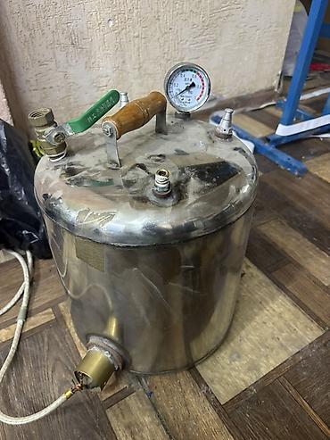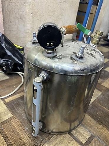 - Паровой котёл (бак) с манометром и арматурой.