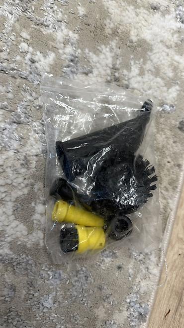 - Набор мелких насадок: точечная сопловая, конусная, круглые щетки (желтые и черные).