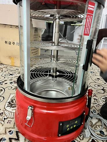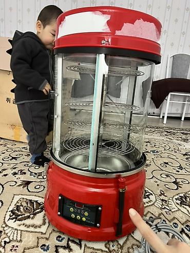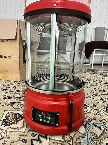 - Внутри: вертикальный вал с несколькими съёмными металлическими решётками-полками для укладки изделий.