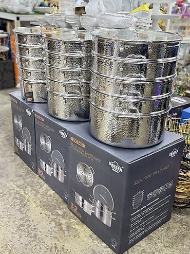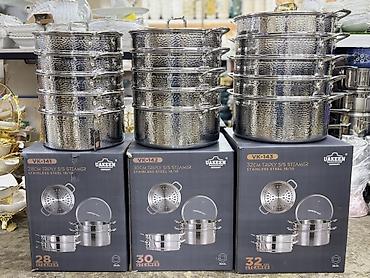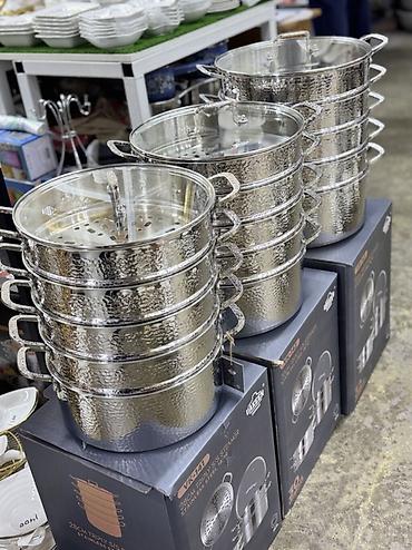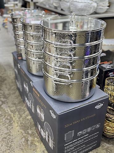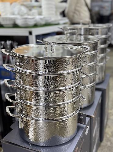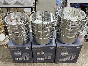 - Комплектация: базовая кастрюля, несколько ярусов-поддонов с перфорацией, стеклянная крышка с пароотводом