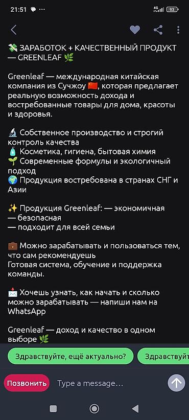 Международная компания Greenleaf (Сучжоу, Китай) предлагает возможность официального партнёрства и дохода в сфере востребованных товаров для дома, красоты и здоровья.