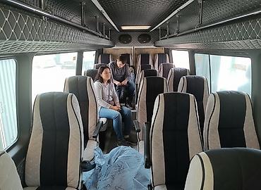 Пассажирский микроавтобус (внутренний салон премиум-класса) - Планировка: три ряда индивидуальных кресел + задний ряд, общая вместимость около 15–18 мест. - Кресла: анатомические, с высокой спинко...