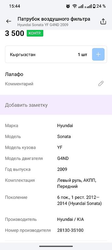 - Оригинальная деталь Hyundai/KIA, маркировка на корпусе: 28130-3S100 / 28130-3S120 (HOSE ASSY – AIR INTAKE, TPE+PP).