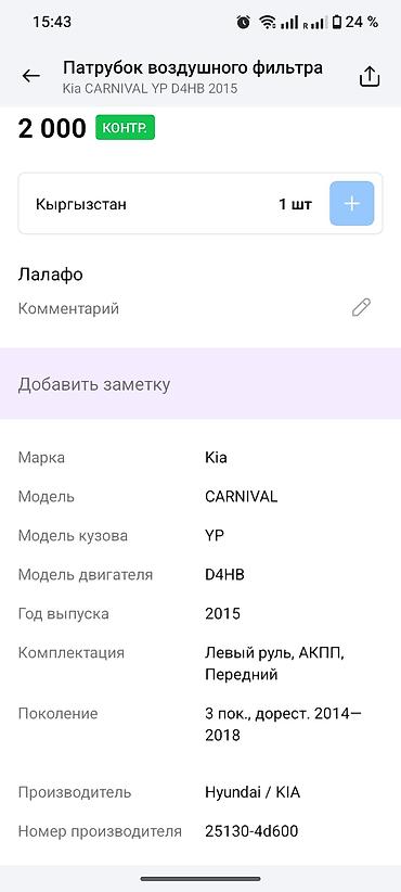 - Применимость: Kia Carnival (YP), 3‑е поколение, дорестайлинг 2014–2018