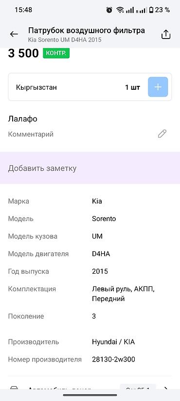 - Применимость: Kia Sorento UM, поколение 3, двигатель D4HA (2.0/2.2 CRDi), год выпуска 2015 и соответствующие.