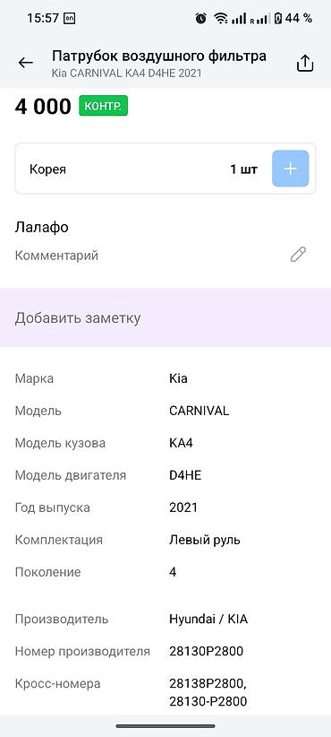 - Совместимость: Kia Carnival KA4 с дизельным мотором D4HE (левый руль, 2021 и др. в этом поколении — сверяйте по номеру).