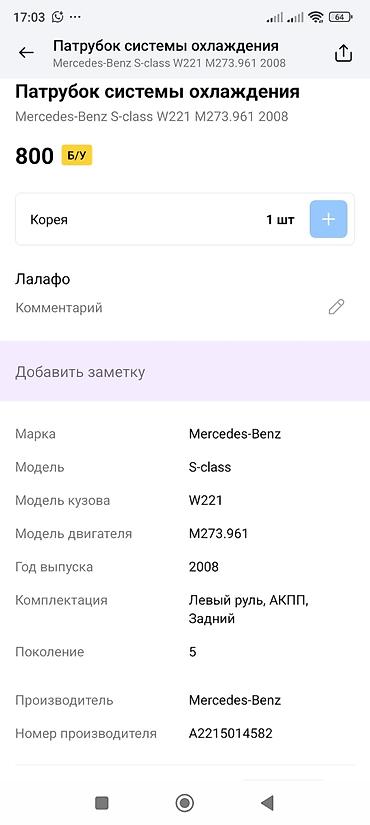 - Подходит для: S-class W221, двигатель M273.961, год выпуска 2008, поколение 5