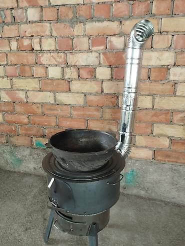 Поставник с казаном и дымоходом 125 литров Зауженные внутренние вариант очень экономичный - Металлическая печь-тагaнок цилиндрической формы для приготовления на открытом огне. - Внутри топки нава...