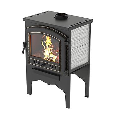 Печь-камин на твердом топливе с панорамным стеклом - Материал: стальной корпус с литой дверцей, жаропрочное стекло. - Тип топлива: дрова/брикет. - Конвекционные прорези на крышке для ускоренного о...