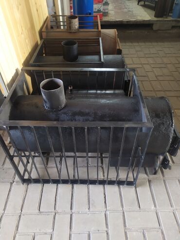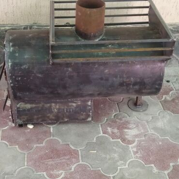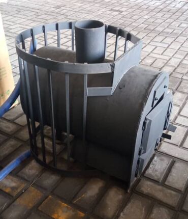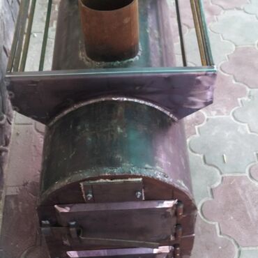 Печь-буржуйка коричневого цвета, выполненная из металла с