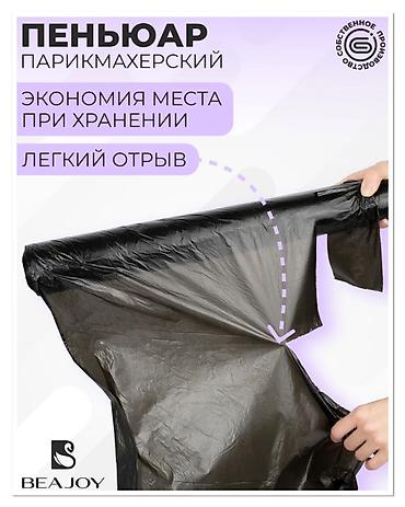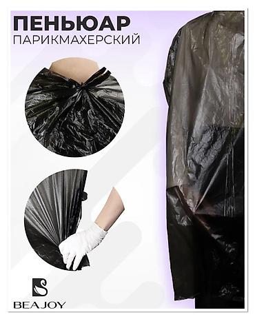 Пеньюар парикмахерский предназначен для защиты одежды клиента от краски и других пачкающих составов во время процедур окрашивания, мелирования, колорирования и других сеансов по уходу за волосами. Изготовлен из полиэтилена низкого давления. Цвет - черный, прозрачный, голубой