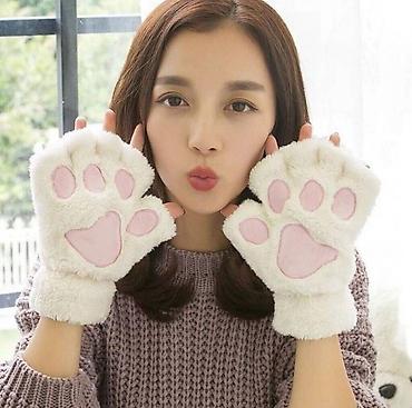 Перчатки, милые утолщенные теплые перчатки без пальцев с полупальцами в виде медвежьей лапы.