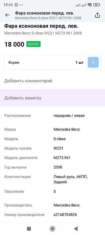 Разбор Mercedes-Benz S‑Class W221 (S500) Авто целиком на разбор. Оригинальные комплектующие по кузову, салону, электронике и ходовой части. Доступно: - Кузовные элементы: капот, крылья, двери, кр...