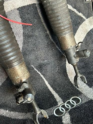 - Дополнительно на фото представлен комплект передних пневмостоек Audi (с электроразъёмами и патрубками) — для автомобилей с пневмоподвеской.