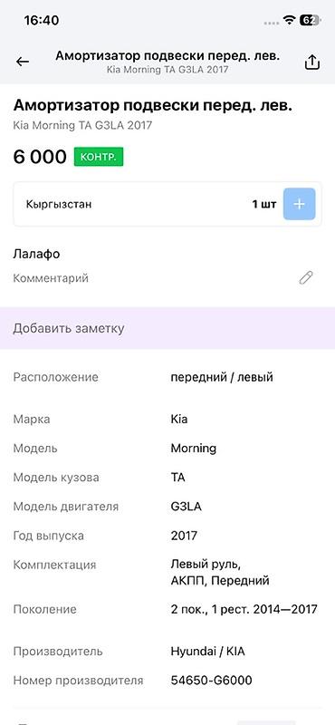 Амортизационная стойка в сборе (передняя левая) для Kia Morning TA, двигатель G3LA, год 2017.
