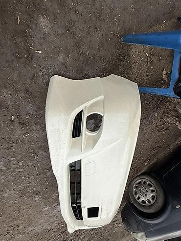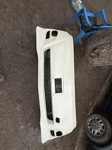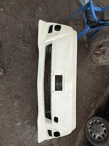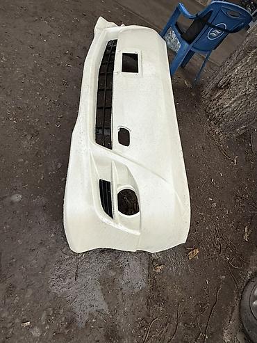 Передний бампер для автомобиля, окрашен в белый цвет.