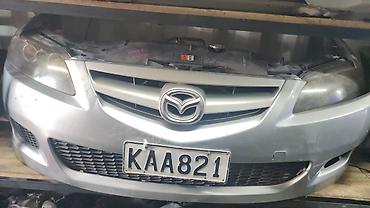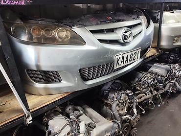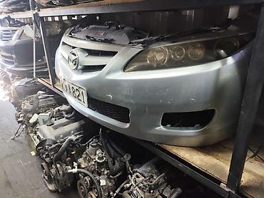Передний бампер в сборе для Mazda 6 первого поколения (кузов GG). Включает в себя решетку радиатора, фары, противотуманные фары и номерной знак с номером KAA821. Серебристый цвет бампера и его конструкция обеспечивают легкую установку на автомобиль. Подходит для замены поврежденного или изношенного элемента передней части кузова.Идеально подходит для ремонта и обслуживания автомобилей Mazda 6.
