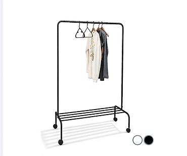 Передвижная вешалка для одежды, выполненная в минималистичном дизайне. Прочная металлическая конструкция обеспечивает устойчивость и долговечность. Оснащена колесиками для легкого перемещения, что делает ее удобной для использования в спальне, прихожей или гардеробной. Доступны различные конфигурации: с одной полкой или двумя полками для обуви и аксессуаров, а также вариант без полок для максимального пространства под одеждой. Идеально подходит для организации хранения вещей и поддержания порядка.