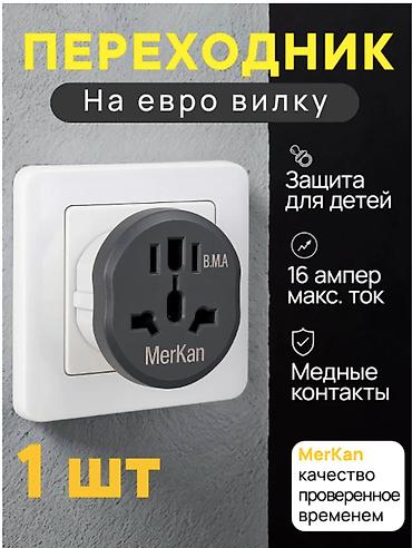 🌍 Универсальный сетевой переходник Merkan — это удобное и надёжное решение для подключения техники с разными типами вилок к российским розеткам. Идеальный аксессуар для путешественников, владельцев импортной электроники и тех, кто ценит безопасность и универсальность.