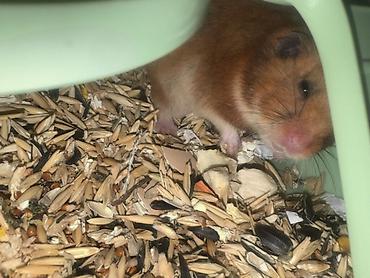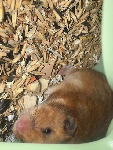 На фото показан пример использовани с хомяком и подстилкой/кормовой смесью.