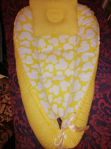 Кокон тоже классная вещь. Лялечка лежит ей тепло, в безопасности, комфортно, потом можно успользовать как бортик под грудку когда выкладывают на животик. Тоже выручали нас. Цена--400сом.