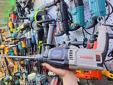 Перфоратор Crown, выполненный в сером и оранжевом цветах, предназначен для сверления отверстий в различных материалах, таких как бетон, кирпич и камень. Инструмент оснащен дополнительной рукояткой для удобства и контроля во время работы, а также патроном SDS-plus для быстрой смены оснастки. Этот перфоратор подходит для строительных, ремонтных и монтажных работ.