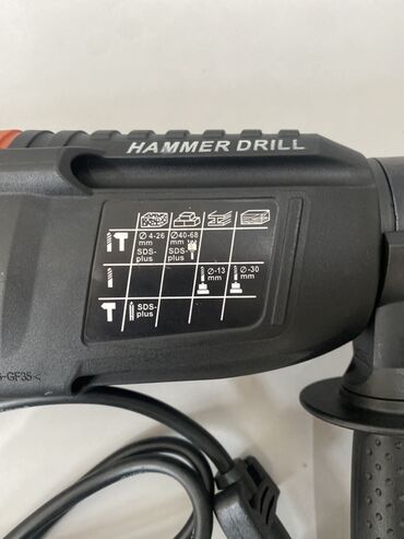 - Диаметр сверления буром SDS‑Plus: 4–26 мм (бетон/кирпич).
