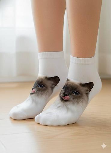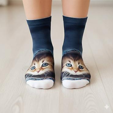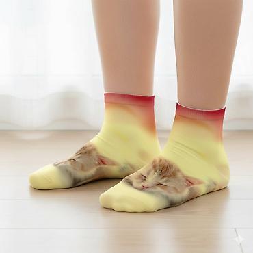 Яркие, стильные и очень удобные короткие носки с фотореалистичным принтом. Изображение пушистого котенка, выглядывающего из-под джинсовой ткани, выполнено по технологии 3D-печати, что гарантирует высокую детализацию и устойчивость к стиркам.