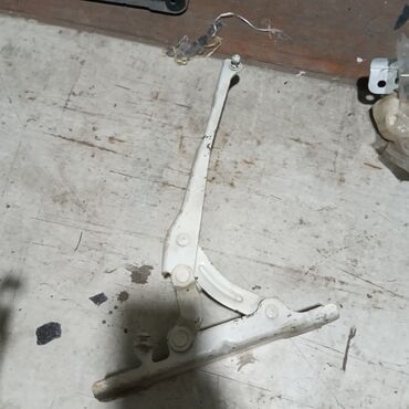 Механизм подъема капота, выполненный из металла с белым покрытием. Используется для фиксации капота в открытом положении. Конструкция состоит из нескольких шарнирных соединений, обеспечивающих плавное и надежное открытие и закрытие. Подходит для использования в автомобилях и других транспортных средствах.