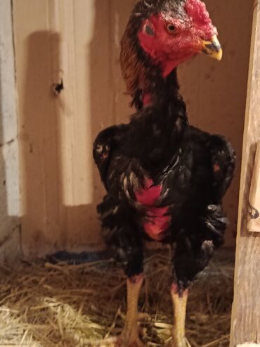 Молодой чёрный петух бойцовского типа (длинноногий, стройный корпус, узкая грудь). Оперение матово‑чёрное, кожные участки головы тёмные. Активный, подвижный, с хорошей стойкой. Подходит для разведе...
