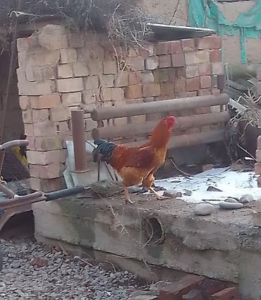 Петухи домашние, разноцветные (пёстрые и рыже‑чёрные окрасы). все три петухи по 1000 сом