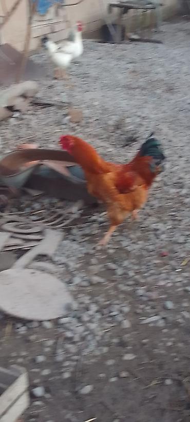 Петух деревенский, рыжий окрас с тёмно‑зелёными косицами на хвосте. Крупный, высокие ноги, выраженный гребень и бородки. Активный, держит стадо, подзывает кур, хорошо ориентируется на выгуле. Подходит для разведения и естественного оплодотворения — уверенно покрывает кур разных мастей. Рацион универсальный: зерносмесь, трава, кухонные отходы. Неприхотлив к содержанию, спокойно переносит свободный выгул и загон. Отличный вариант для формирования племенной группы и повышения оплодотворяемости кладки.