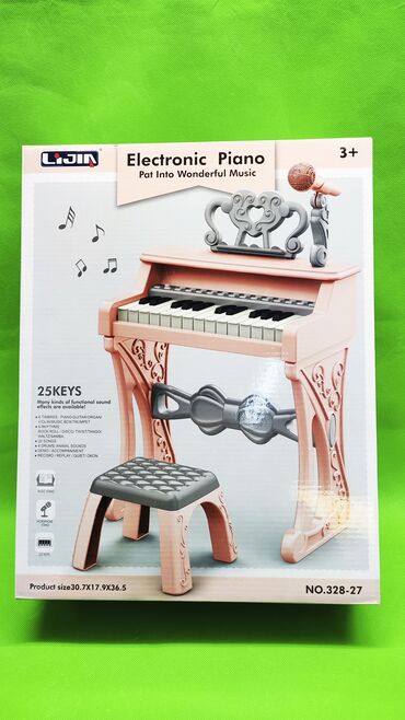 Пианино насчитано под рост ребенка от 3 лет, на нем есть 25 клавиш, а также 6 тембров, 6 ритмов, 22 песни, 4 звука барабана и животных, демо и аккомпанемент, а также запись и воспроизведение