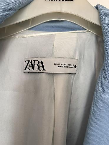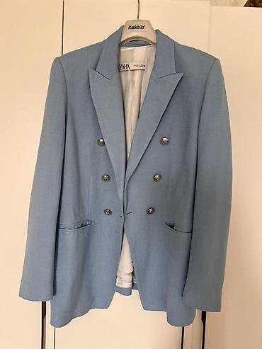 Жакет ZARA, женский, двубортный, цвет светло-голубой.