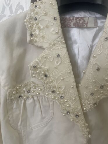 Женский пиджак с контрастной отделкой - Цвет: черный с белыми манжетами - Крой: приталенный, с вытачками по груди - Застежка: на пуговицы (видна центральная пуговица, дополнительная ниже) - Декор...