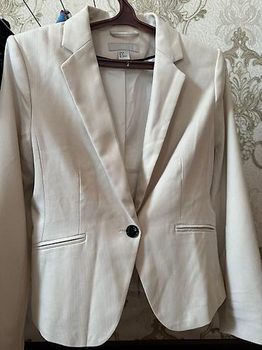 Женский пиджак в полоску - Цвет: черный с тонкой светлой вертикальной полосой - Крой: прямой, удлиненный силуэт - Застежка: одна пуговица спереди - Воротник: классические лацканы средней ширины - ...