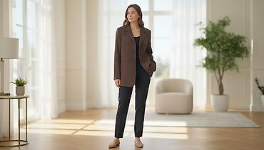 Черная капсульная подборка одежды: 1) Брюки — классические, прямые с легким расклешением к низу, высокая посадка, застёжка на молнию и пуговицу, без декоративных элементов. Универсальная база для ...