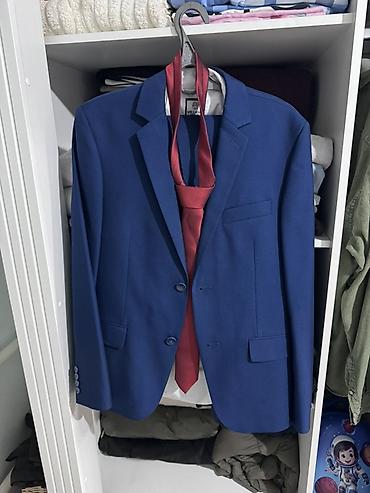 - Комплект: пиджак; на фото — с бордовым галстуком для наглядности стиля