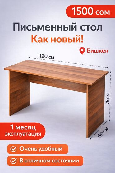 Стол письменный, учебный, офисный.цена 3000 сом, новый . размер 120/80см, высота 73см.