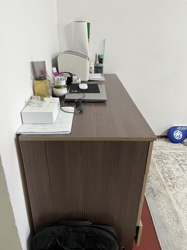 Продаю рабочий стол, размеры 110х60х75 Стол 3000 сом Книжную навесную полку, размеры 200х35 Полка 3000 сом - Правая тумба с распашной дверцей и двумя внутренними полками для книг и принадлежност...