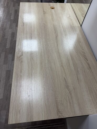 Продаётся прямоугольный стол в современном стиле. - Материал: ЛДСП под светлый дуб/ясень с выраженной древесной текстурой - Цвет: светло-бежевый, натуральный древесный оттенок - Конструкция: масси...
